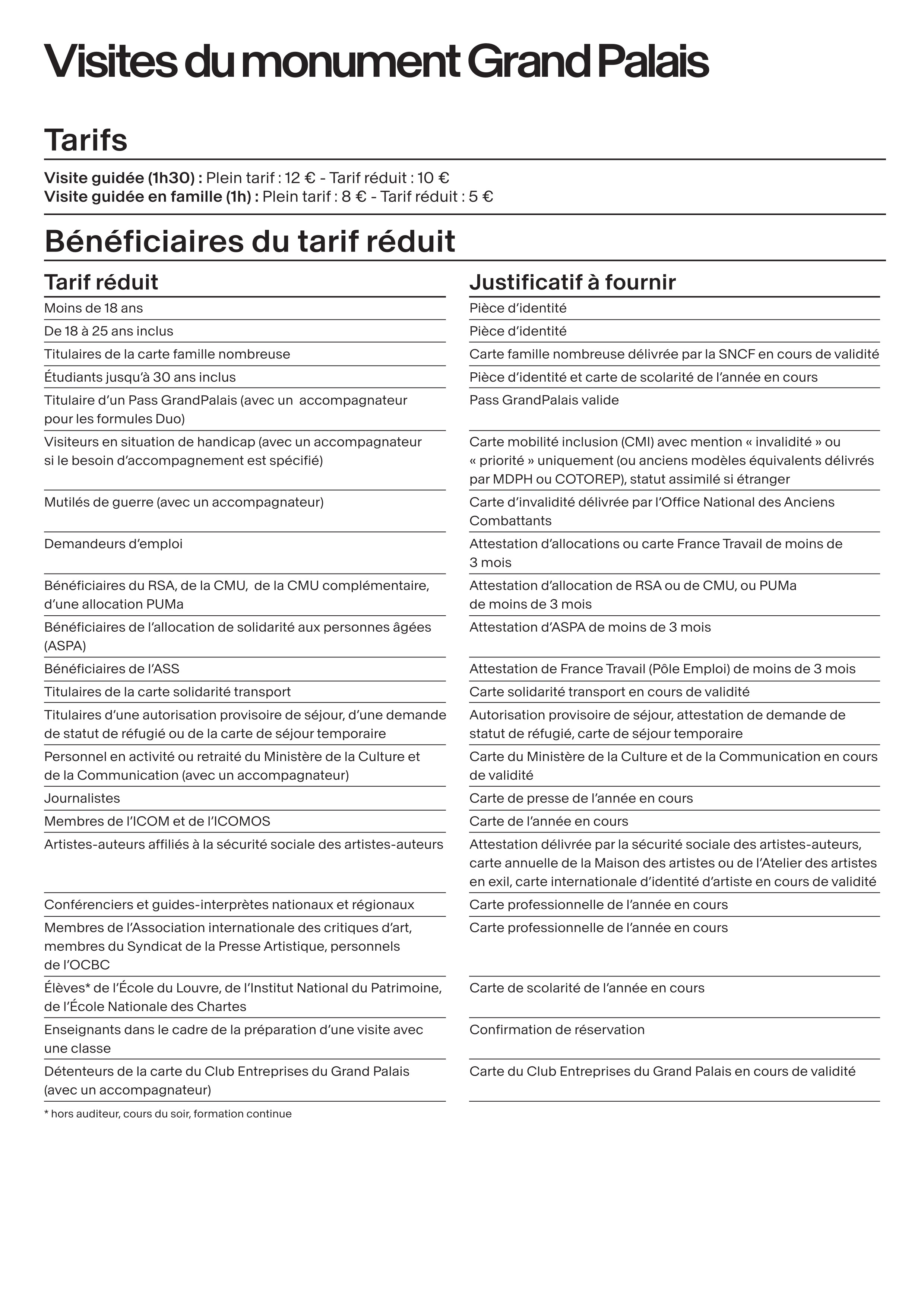 Régime du droit d'entrée Visite du Monument Grand Palais